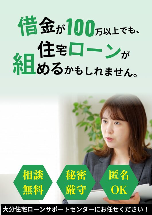 借金で住宅ローンが厳しいかも、とお悩みの方へ。大分で住宅ローン実績800件超の専門家に今すぐご相談ください!